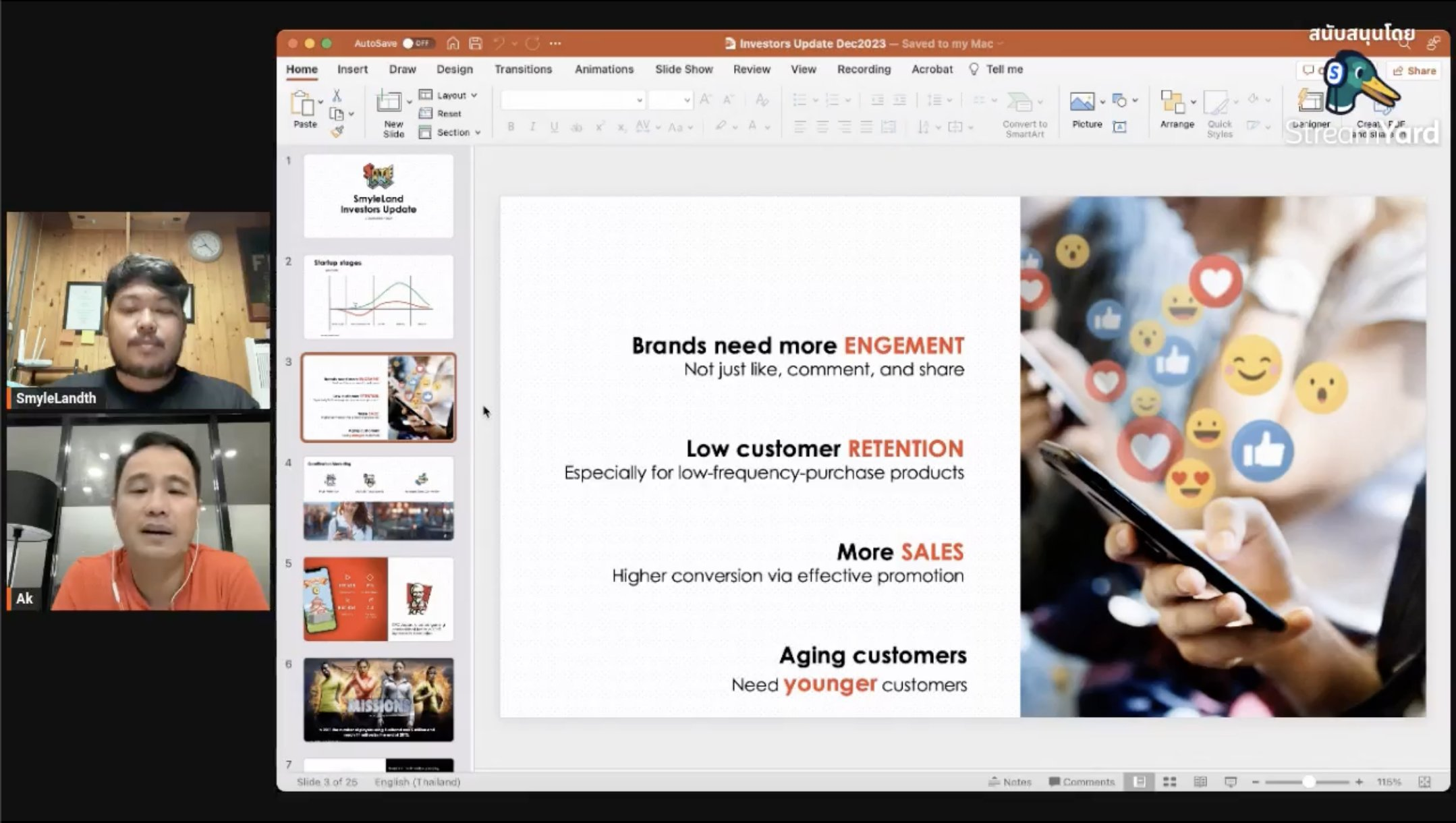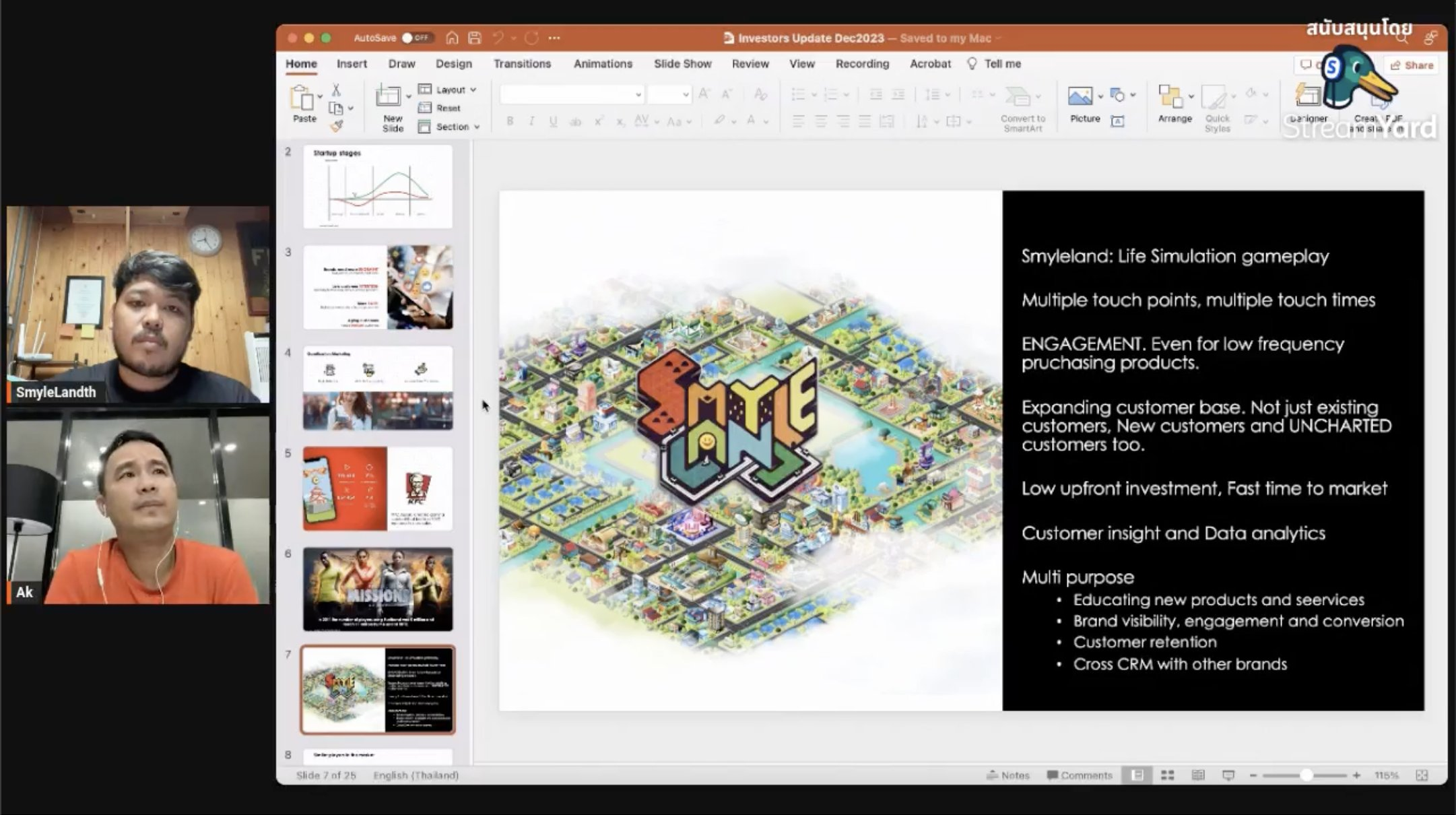 SmyleLand คือ gamification marketing platform ต้องการ engagement ที่ไม่ใช่แค่ยอดไลค์ แชร์ แต่เป็นในรูปแบบของเกมส์จำลองสถานการณ์ ในที่นี้คือเอาเกมส์มาช่วยการทำตลาด เนื่องจากมี engagement สูง แก้ปัญหาเรื่อง retention น้อย